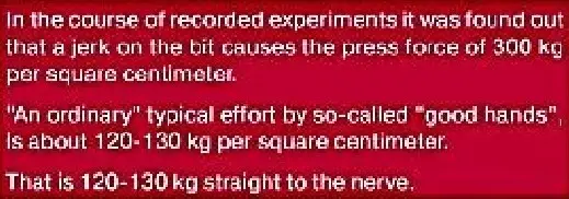 The evidence shown above clearly indicates the fragility and sensitivity of the horse’s mouth. It must be treated with great care and maintained both with good dental treatment and optimum communication between rider and horse.