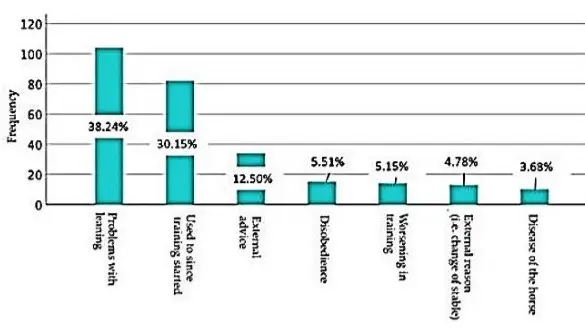 Resistances in both type and severity are linked to many things, including the level and type of training, quality of riding, tack and severity of rein pressure. The next chart shows some of the factors influencing rein pressure.